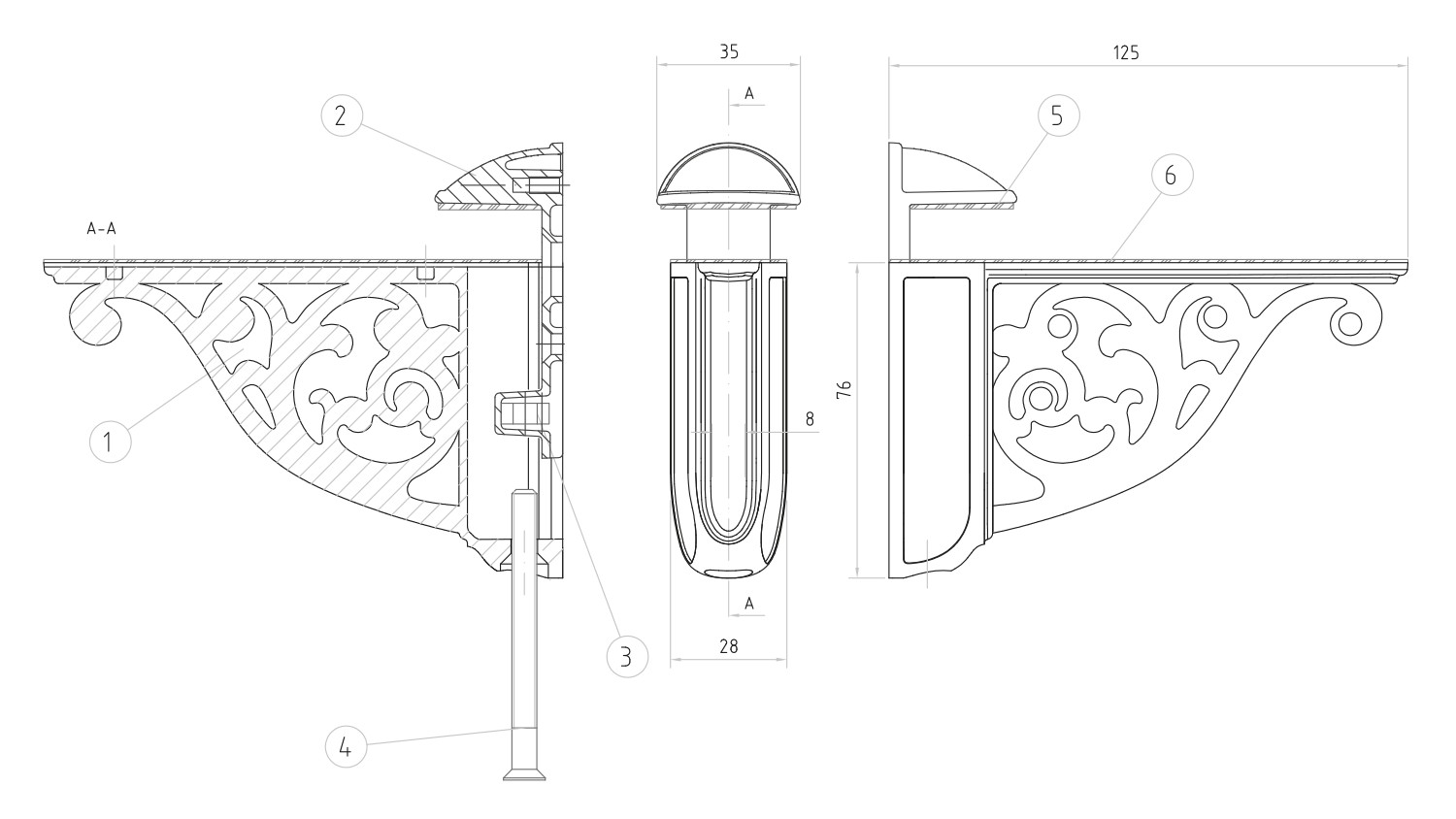 290 KčSAPHO – RETRO držák police 8-40, starobronz LL009