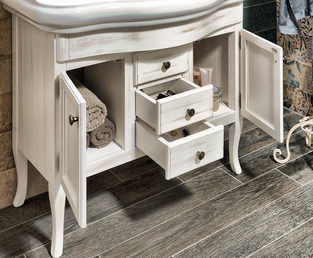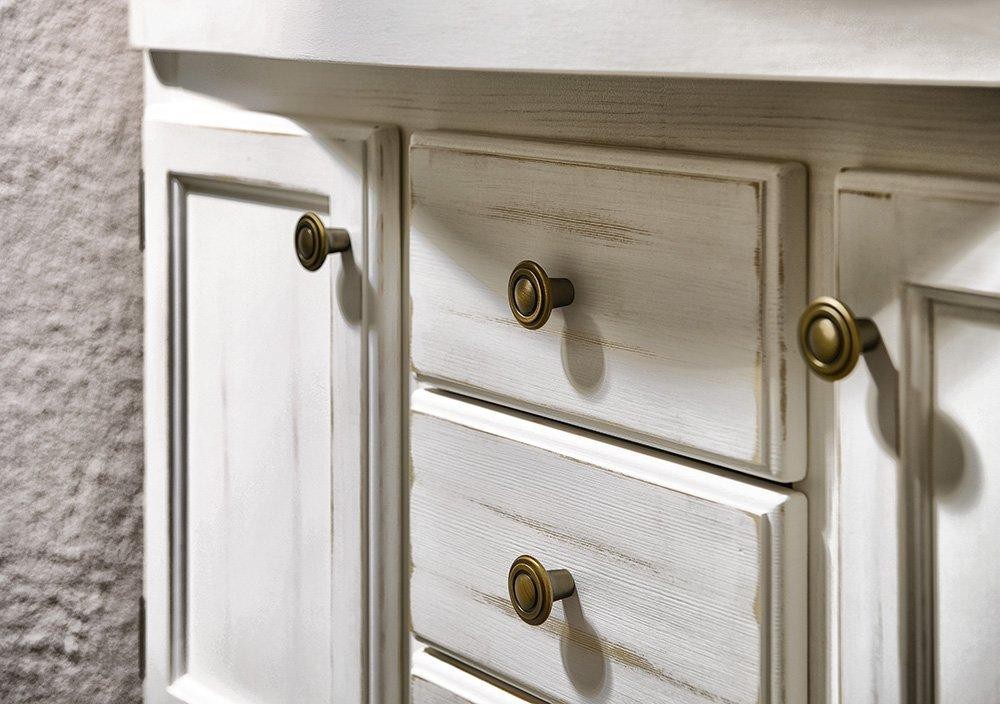 Z důvodu instalace sifonu je horní zásuvka imitace = pouze pevné čelo Standardně dodáváno s úchytkou 12936 Povrchová úprava: speciálně nanesená bílá barva + krycí lak od italské firmy ASTRA VERNICIRetro styl vnáší do interiéru…
