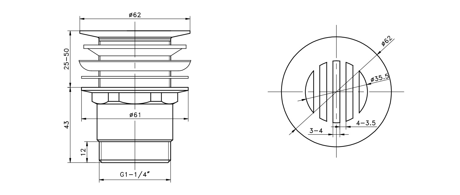 SAPHO – Umyvadlová výpust 5/4“, neuzavíratelná, design zátka, 25-50, chrom CV2009