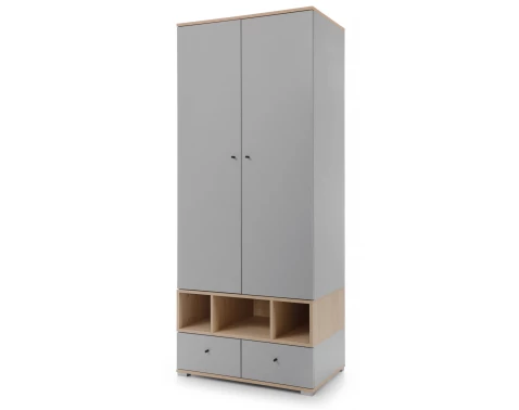 Šatní skříň Room v elegantní kombinaci dubového dekoru a šedé barvy přináší moderní a praktické řešení do dětského či studentského pokoje i domácí pracovny.