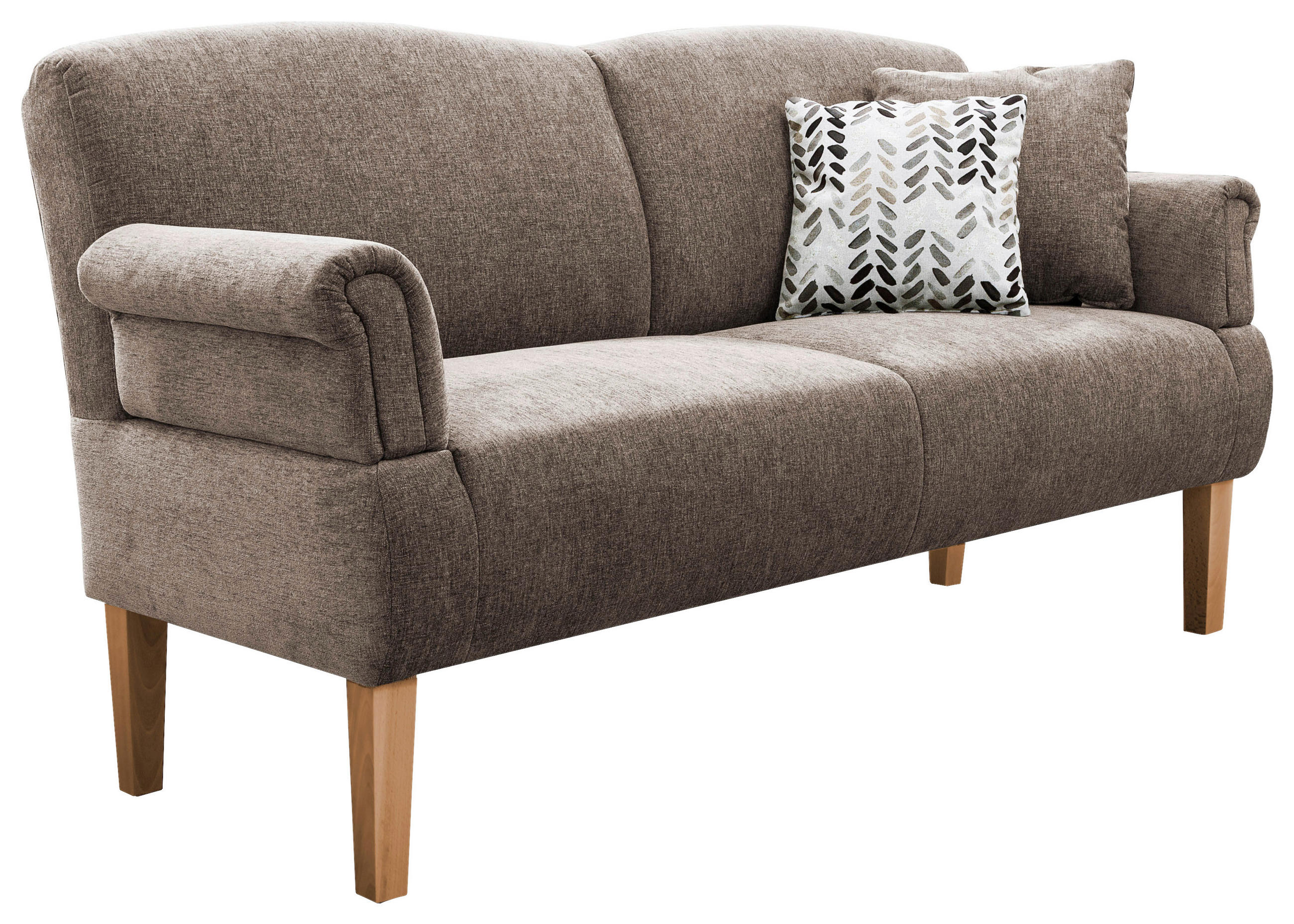 Tato pohodlná pohovka v hnědé barvě je dokonalým propojením funkčnosti a stylu. Základní informace přehledně: Š x V x H: cca 181 x 98 x 81 cm počet míst k sezení: cca 3 sedací plocha: cca 148 x 50 cm (Š x H), výška sedáku: cca 52 cm komfortní vyvýšení max. nosnost každého sedáku: cca 120 kg područky: cca 14 x 74 cm (Š x V) výška nohy: cca 26 cm V hlavní roli komfort Povrchová úprava plochá tkanina je velmi příjemná na dotek a přirozeně prodyšná. Díky čalouněným zádům navíc nemusíte sedačku stavět výhradně ke stěně. Ideální oporu vám poskytne a přílišnému zaboření zabrání její kvalitní pružinové a pěnové čalounění s vlnkovým pružicím roštem. Tepelně izolační jádro z polyetherové pěny dobře propouští vzduch, je pružné a tvarově stálé. Díky vysoké bodové elasticitě se můžete těšit na jednoduše pohodlné sezení. Rozmazlovat se můžete nechat také doplňkovými funkcemi, jako je možnost nastavit si područku. Designové posezení Odstín hnědé vnese do vašeho obývacího pokoje harmonickou energii, kterou je inspirovaný. Celkový vizuální dojem čalouněného nábytku dotváří jeho umístění na hranatých nožkách z buku v přírodní barvě. Cena zahrnuje: nastavení područky (ruční) čalouněná záda Místo, kde můžete vypnout: dopřejte si tuto pohodlnou pohovku v hnědé barvě výhodně online! Cena nezahrnuje dekoraci. Informace o příslušenství k produktu najdete v Detailech výrobku. Informace o dalších dostupných variantách, doplňcích a příslušenství vám rád poskytne náš zákaznický servis. Kontaktní formulář – TYP: 3206, – BEZ: ALVARO LATTE, PG2,