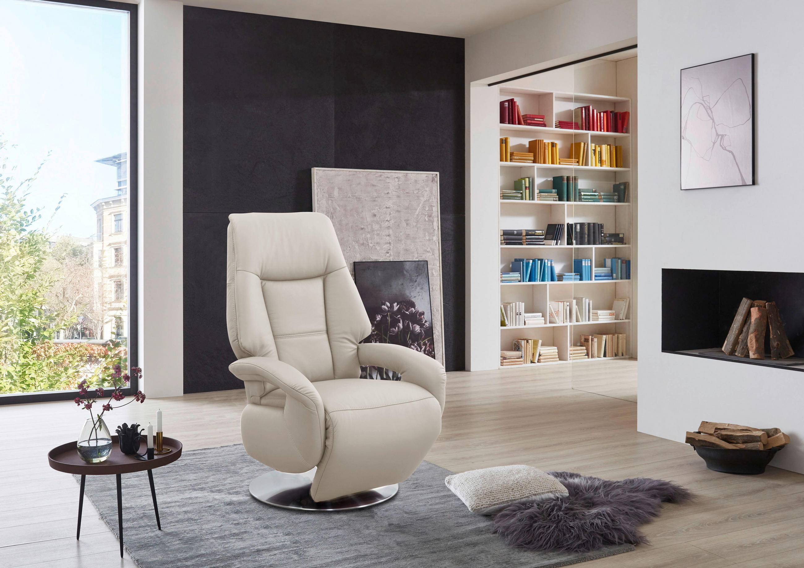 RELAXAČNÍ KŘESLO, kůže, bílá – TYP:1222, 2MOTASH, – PUNCH, REINWEIß, – 74,111,77cm
