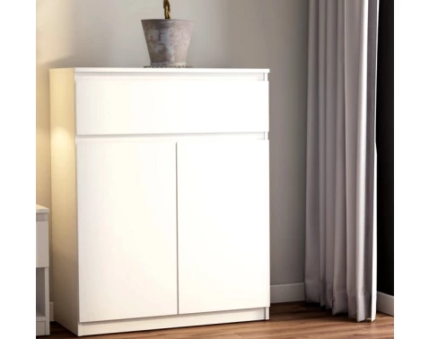 Skříňka se šuplíkem o šířce 80 cm v bílé barvě nabízí praktické úložné prostory, účelnost a čisté linie tvarů, které se hodí do každého interieru.