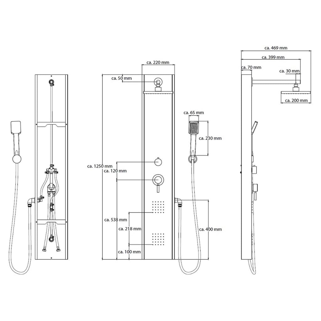 rozměry panelu (d x š x h): 125 cm x 22 cm x 47,5 cm