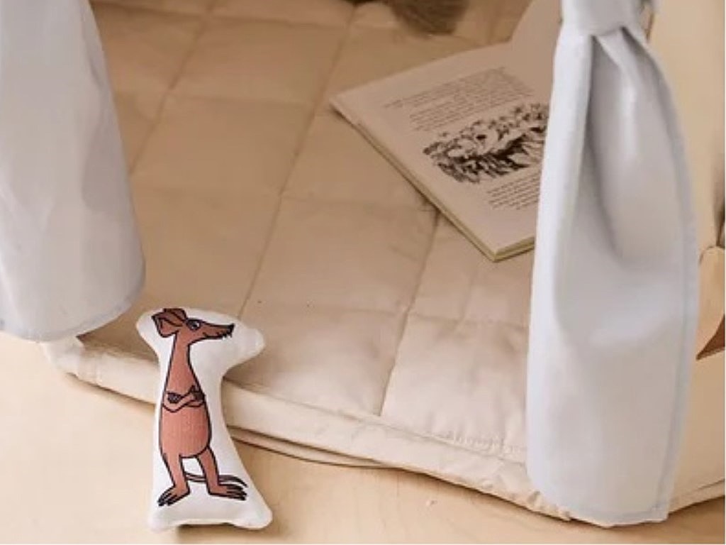 Děti milují různé schovávačky, bunkry a domečky. Látkový pavilon z certifikované bavlny s dřevěnou kruhovou konstrukcí a si tak oblíbí, že v něm s velkou pravděpodobností budou chtít i spát. V dětské fantazii se může altán stát čímkoli – domečkem na hraní, obchodem, knihovnou, schovávačkou před divokými zvířaty v džungli, chladným místečkem v oáze na vyprahlé poušti nebo prostě útulnou chatkou. Děti si přinesou velkou hromadu dek a polštářů a zabaví se hraním v altánku na celé hodiny. Jedinečný prostor, který jim stan nabídne, jim společně s textilními figurkami z oblíbené pohádky o mumíncích umožní imaginativní hru a vytváření si vlastních světů a příběhů.