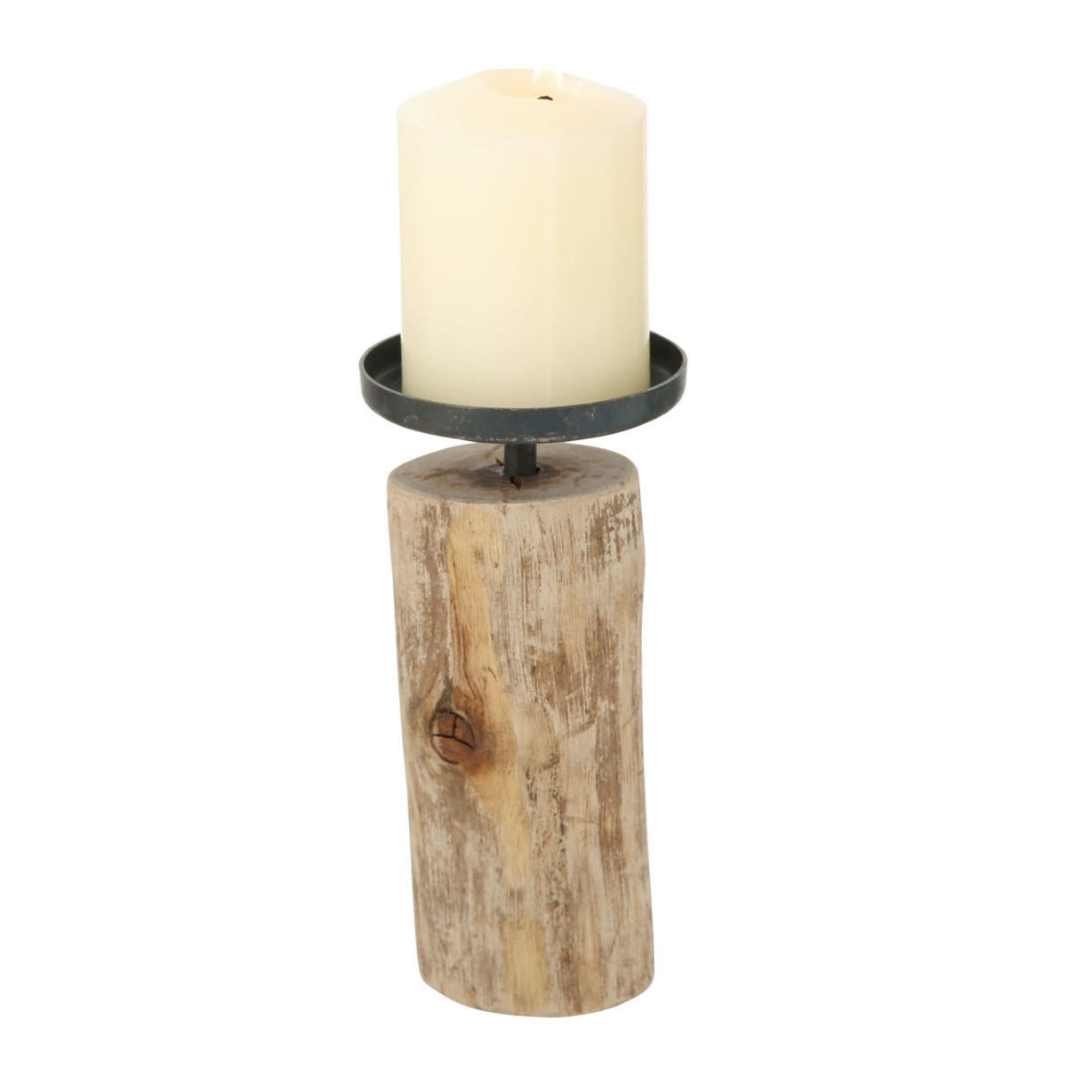 STOJAN NA SVÍČ. KY dřevo – TEMPE, NATUR, Č. ERNÁ – DŘ. EVO, KOV – 17 CM