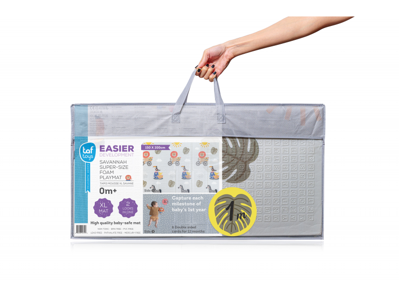 Materiál, ze kterého je hrací podložka vyrobena, je zcela bezpečný pro zdraví vašeho dítěte a neobsahuje BPA, PVC, olovo, ftaláty ani rtuť.