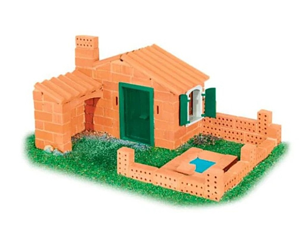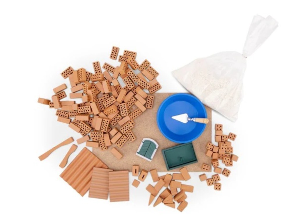 Dětská stavebnice s cihlami nabízí jedinečnou možnost postavit si dům, opravdovou stavbu, jen ve zmenšené podobě. Miniaturní hladítko a miska malty poskytují skutečný pocit ze stavby. Cihly z pravé hlíny se stejně jako originál vypalují ve vypalovací komoře do 1000 °C. Součástí je samozřejmě i základní deska. Ilustrovaný návod provede děti krok za krokem celým procesem stavby. Malta je vyrobena z přírodní směsi písku a kukuřičného extraktu. Je zdravotně nezávadná, rozpustná ve vodě a snadno omyvatelná z oblečení i nábytku. Na přípravu malty smícháte poměr vody a sypké směsi cca 1:2. Po dokončení stavby můžete ponořením domu do vody maltu rozpustit. Rychlost rozpuštění závisí na teplotě vody. Cihly lze neomezeně používat znovu pro další novostavby, kdy pouze pořídíte novou maltu pro další stavění.