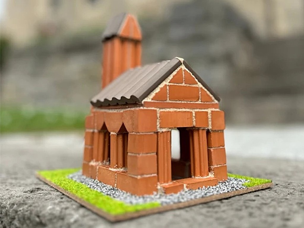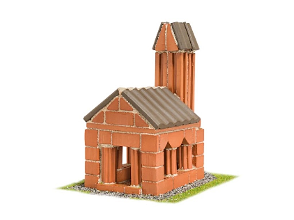 Kreativní sada obsahuje skutečné cihličky z pravé hlíny, speciální maltu, nářadí i návod – vše, co malý stavitel potřebuje ke stavbě vlastního miniaturního kostela, který pod rukama doslova ožívá cihlu po cihle.