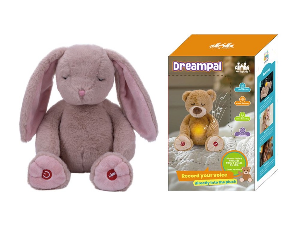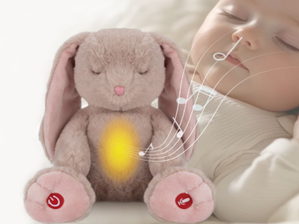 Roztomilý plyšový králíček se stane nejlepším kamarádem vašeho miminka od 6 měsíců. Není pouze hračkou – je to měkoučký společník, který díky svým speciálním funkcím přináší dětem pocit bezpečí, blízkosti a harmonie, přesně to, co potřebují k poklidnému usínání i hlubokému spánku. Uspávání s tímto heboučkým kamarádem se tak může proměnit v krásný, klidný rituál plný pohody.