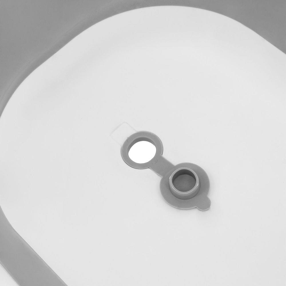 Kromě praktičnosti potěší i bezpečnostní detaily, jako jsou protiskluzové nožičky a těsná výpustná zátka, která usnadňuje vylévání vody. Elegantní bílo-šedý design se hodí do jakéhokoliv interiéru a kvalitní materiály zajistí dlouhou životnost i snadnou údržbu.