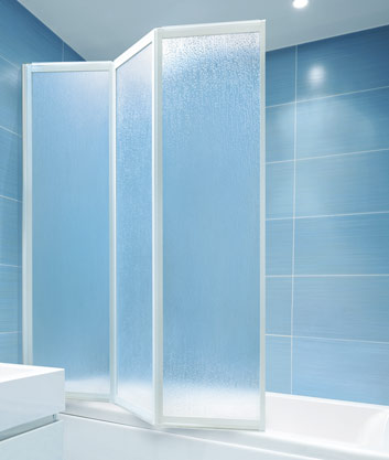 Vanová zástěna čtyřdílná 114x140cm bílý rám výplň plexisklo/ neprůhledné sklo