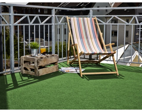 Koberec umělá tráva 133×300 cm v zelené barvě dodá svěží vzhled balkonu nebo terase, bez potřeby sekání a zalévání. Odolný a snadno udržovatelný materiál.