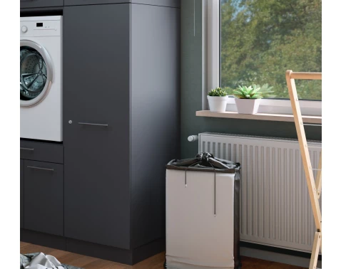 Víceúčelová skříň s policemi se zámkem z kolekce Mr. Sauber v antracitové barvě nabízí moderní a praktické úložné řešení do koupelny, prádelny nebo i jinam.