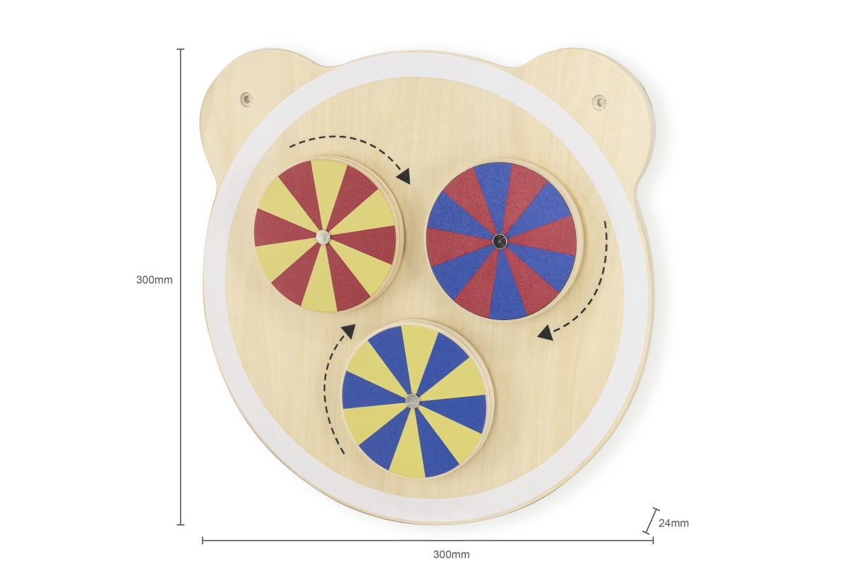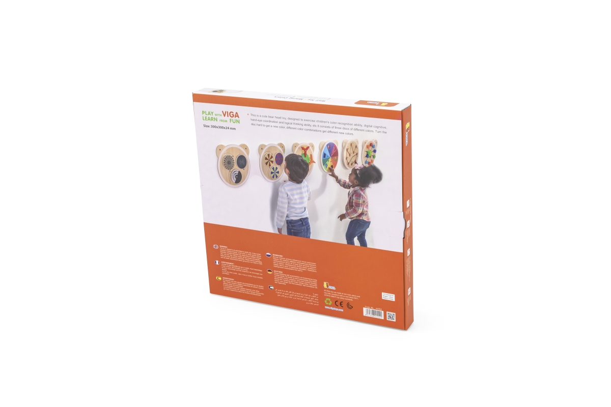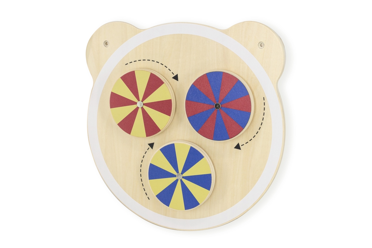 Motorická hračka ve tvaru medvědí hlavičky je navržena tak, aby procvičovala schopnost dětí rozpoznávat barvy, zdokonalila koordinaci rukou a očí i logické myšlení. Jakmile děti roztočí barevná kolečka, začne se dít nevídané. Barvičky se namíchají a o skvělou podívanou je postaráno.