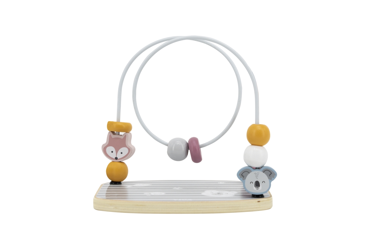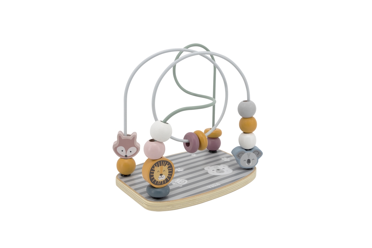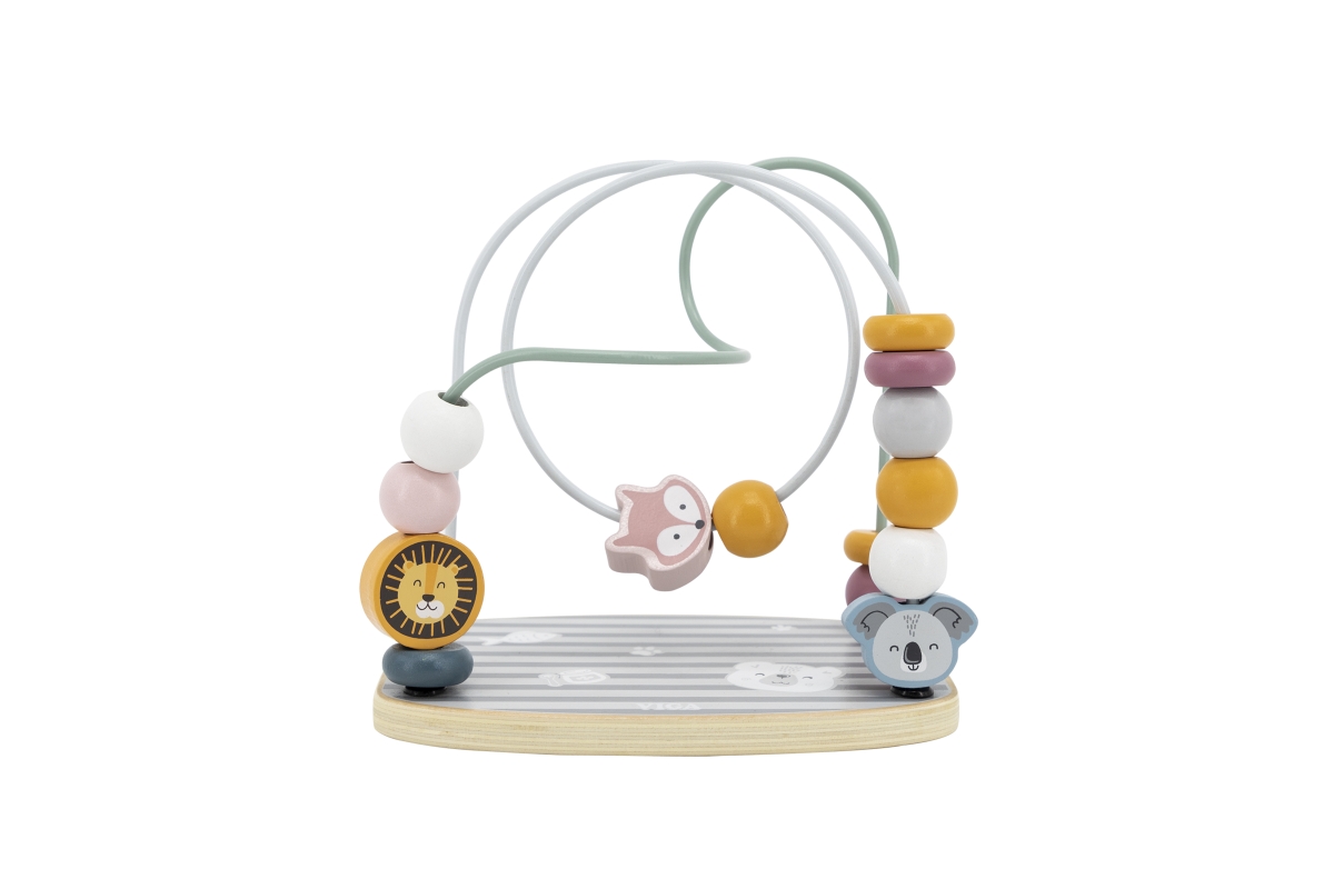 Dřevěné bludiště v jemných pastelových barvách je vhodnou hračkou pro malé kluky i holčičky. Lesní zvířátka i barevné korálky se nemohou dočkat, až je děti bezpečně provedou zamotaným labyrintem. S liškou, lvem i koalou si děti procvičí jemnou motoriku, logické myšlení a prostorovou představivost, koordinaci očí a rukou. Děti se naučí aspoň chvíli soustředit na jednu činnost a trpělivosti.