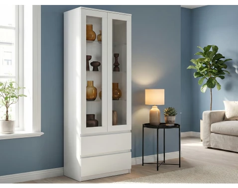 Vysoká vitrína Carlos, bílá, šířka 70 cm