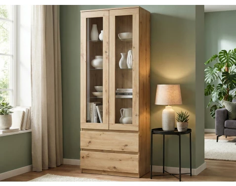 Vysoká vitrína Carlos, dub artisan, šířka 70 cm