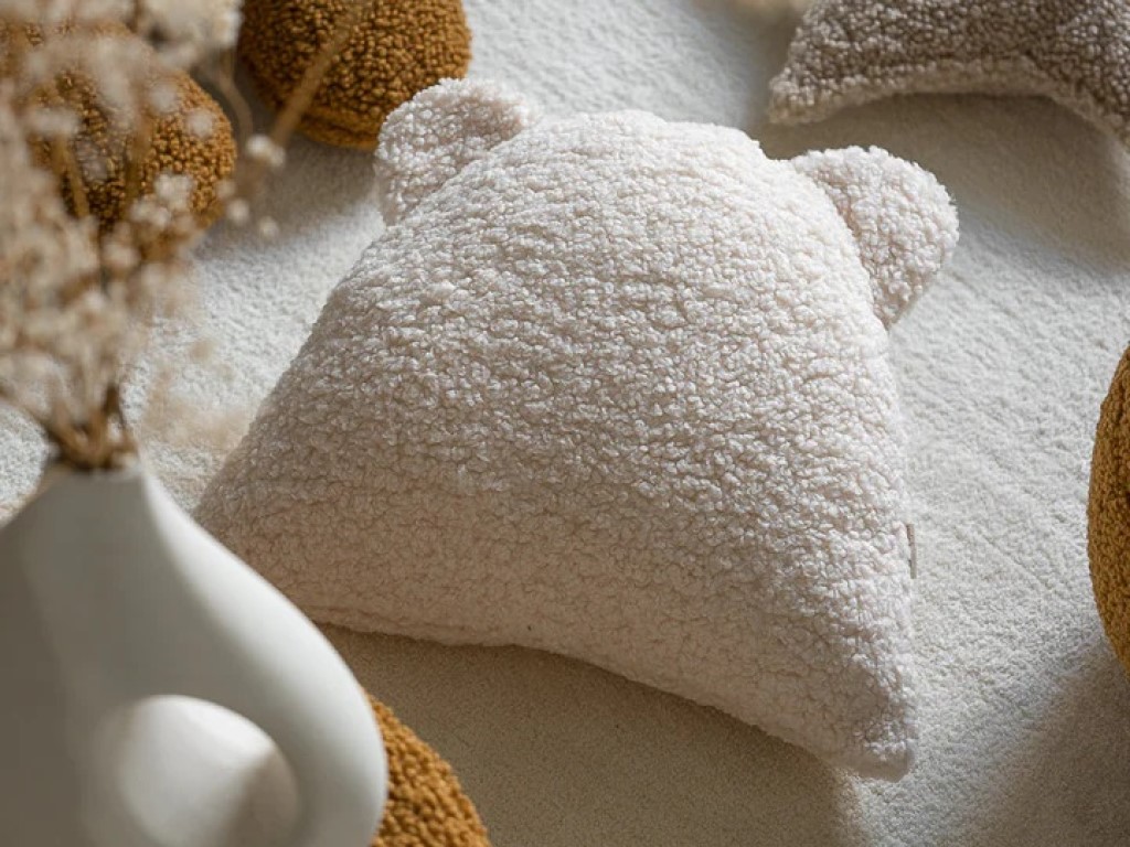 Medvídek – dětský polštář s oušky vypadá jako velký plyšový medvídek.