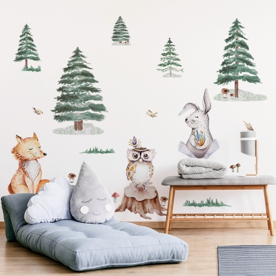 Nálepku v příjemných, přirozených barvách můžete umístit na jakýkoli hladký povrch, což vám umožní zdobit nejen stěny, ale i nábytek a okna a tak vytvořit unikátní uspořádání. Všechny prvky samolepky (větve, kmeny, houby, tráva i sníh) jsou řezané odděleně a můžete je nalepit jednotlivě podle vlastního uvážení. Podívejte se na naše pokyny Jak postupovat při lepení nálepek na zeď.