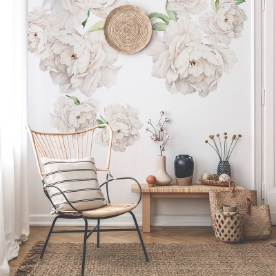YOKODESIGN Samolepka na zeď Pivoňky barva: Bílá
