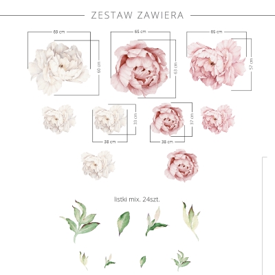 Samolepky pivoněk byly vytvořeny  pro všechny příznivce květinových motivů. Jsou k dispozici v růžové, modré, bílé a broskvové variantě.