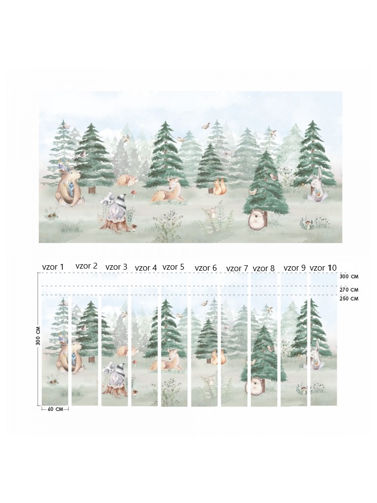Moderní tapeta na stěnu oživí jak chlapecký, tak dívčí pokojíček. Tapeta svou originalitou zaujme každé dítko a vtáhne jej do přírody. Děti tak mají příležitost se ocitnout mezi zvířátky ve svém vlastním lese. Díky roztomilým zvířátkům z lesa – medvědu, mývalu, srnce, veverce, zajíčkovi a ježečkovi, si děti tapetu během chvíle zamilují. Zvířátka jsou krásně graficky zpracované a budou dětem dělat radost při hře i odpočinku.