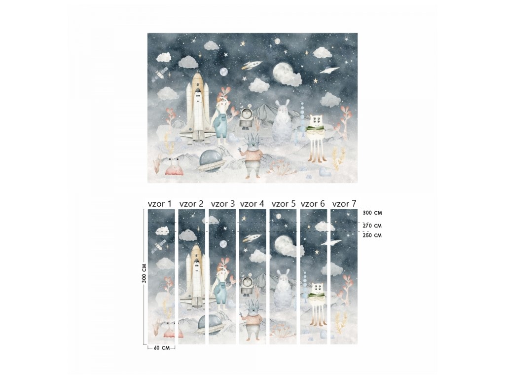 Fantastická vinylová tapeta na zeď se strukturou plátna s motivem mimozemské krajiny zútulní každý dětský pokojíček a přenese jej do jiné dimenze. Na této originální nadpozemské tapetě se toho děje opravdu hodně, najdete zde rakety, vesmírné lodě, vegetaci a obyvatelé planety, to vše pod hvězdnou oblohou. Obrázky na tapetě jsou namalovány akvarelovou technikou. S tapetou podpoříte dětskou představivost a rozšířit znalosti o vesmíru.